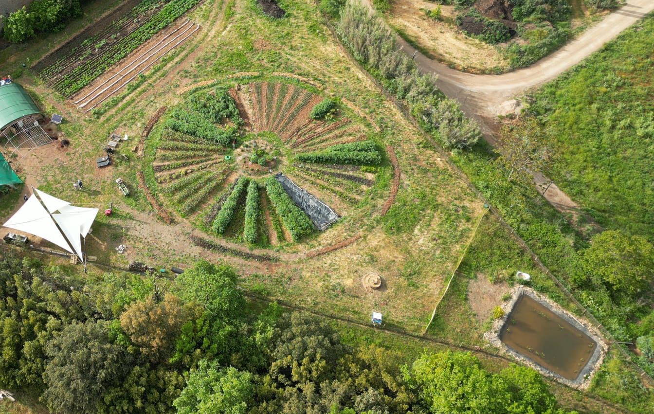 - Un espace de production maraichère en agroécologie & permaculture avec un mandala et un verger en agroforesterie (83 arbres fruitiers plantés)